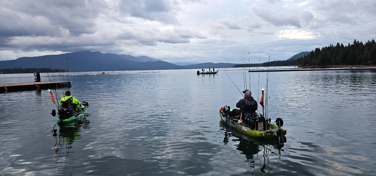 By 5:00 a.m. Saturday, I was down at the edge of Lake Almanor and the Plumas Resort marina, where the BAM Trail Kayak Bass Fishing Tournament was set to begin. The lake was a mirror—flat, calm, and utterly peaceful. Forty anglers readied their kayaks in the pre-dawn light, their breath visible in the morning chill. A morning fisherman’s prayer and discussions about the day’s expectations, including possible rain later in the morning, filled the air before the launch. Mark Pilgrim, a local pro and respected figure on the BAM Trail, invited me to ride along in his bass boat so I could capture some footage.
