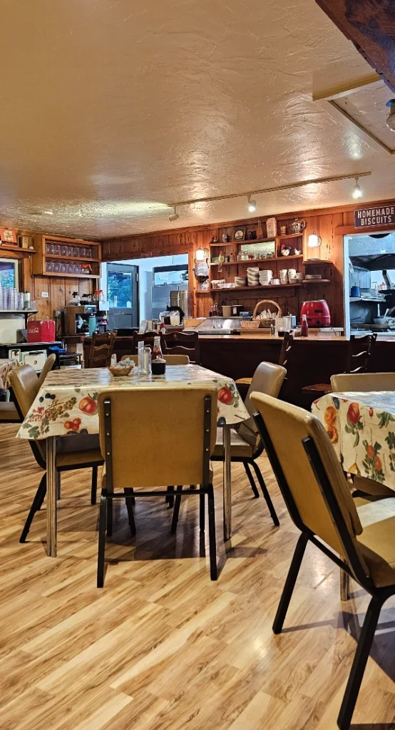 Back on shore, soaked to the bone, I said goodbye to Mark and wished him safe travel as he headed to get himself off the water. I changed into dry clothes and drove to Carol’s Café in Prattville, just down the shore its not even 8 am yet. The shift in tone was surreal—just minutes before, we’d been in crisis mode. Now, I was welcomed with warm coffee, the smell of freshly made biscuits, and the easy chatter of locals gathering for breakfast. Carol, the namesake and matriarch of this beloved roadside institution, was there in person, walking her dog and greeting guests, cracking jokes, and preparing for her day; I wondered if she already had pies in the oven.