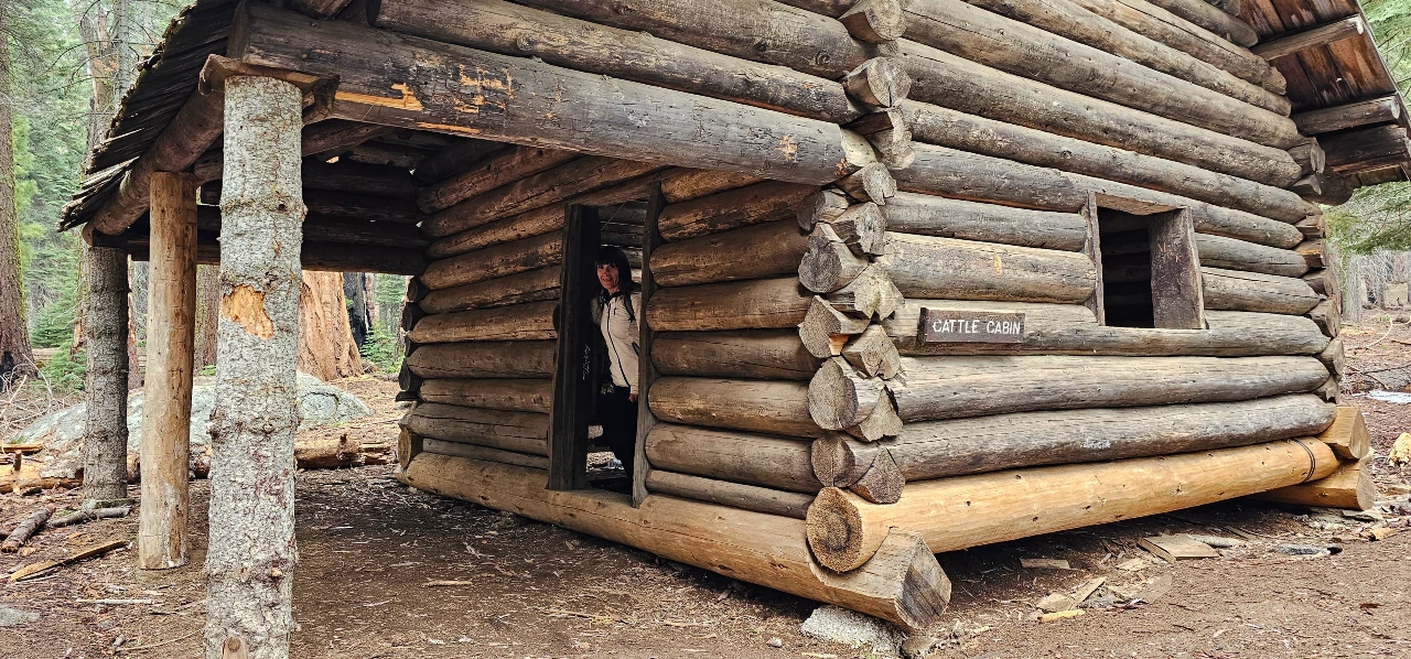 Climbing out of the Sherman spectacle on the Congress trail, the crowds again started to thin. We enjoyed a small waterfall on the trail and seeing the Mckinnley tree before connecting again to the Alta trail shortly and exiting onto the Old Meadow loop, which leads to an old loggers cabin among the giants. At this time of year, after a hard winter, this trail was in rough shape. We ran into a family following us while taking a break near a family of giant Sequoia just past the canyon. With no recognizable trail, they would have been advised to turn around.
