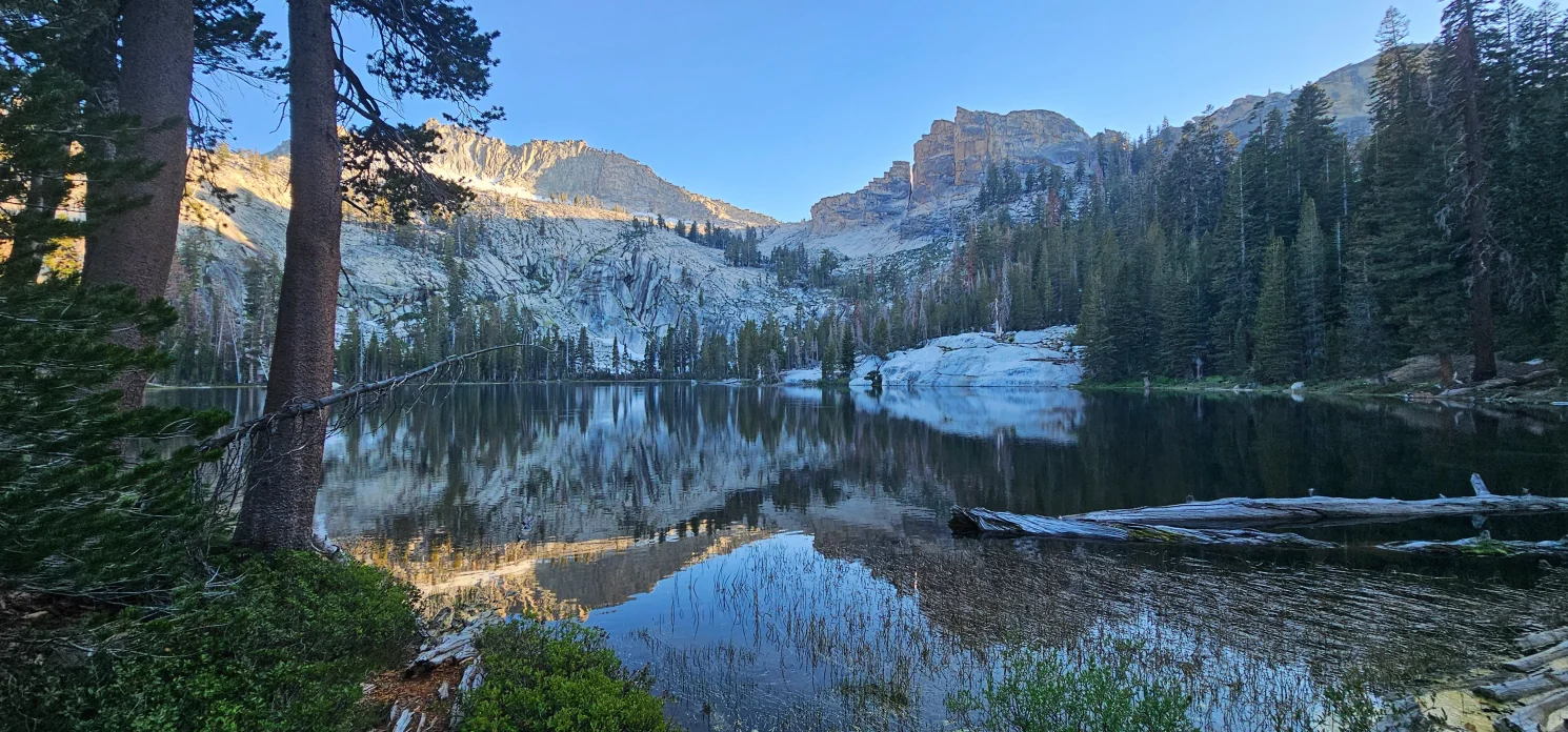 Days 3 and 4 were dedicated to the challenging but rewarding backpacking adventure through Silliman Pass. The well-maintained trail led us through a diverse landscape, from thickly wooded sections to rocky outcrops. Each bend in the path revealed a new vista – a cascading waterfall, a meadow bursting with wildflowers, or a glimpse of the distant peaks. Reaching the top of Silliman Pass was a moment of pure exhilaration. The expansive view of the entire Southern Sierra stretched before us, a panorama that ignited the explorer’s spirit within. Our first night’s camp at Twin Lakes was a serene haven tucked up into the granite with twin peaks granite boulders towering just below the pass. The crystal-clear water provided a refreshing dip on the south east shoreline after the day’s hike and the quiet evening playing cards on the forest floor; the encroaching mosquitos were manageable but ever-present.
