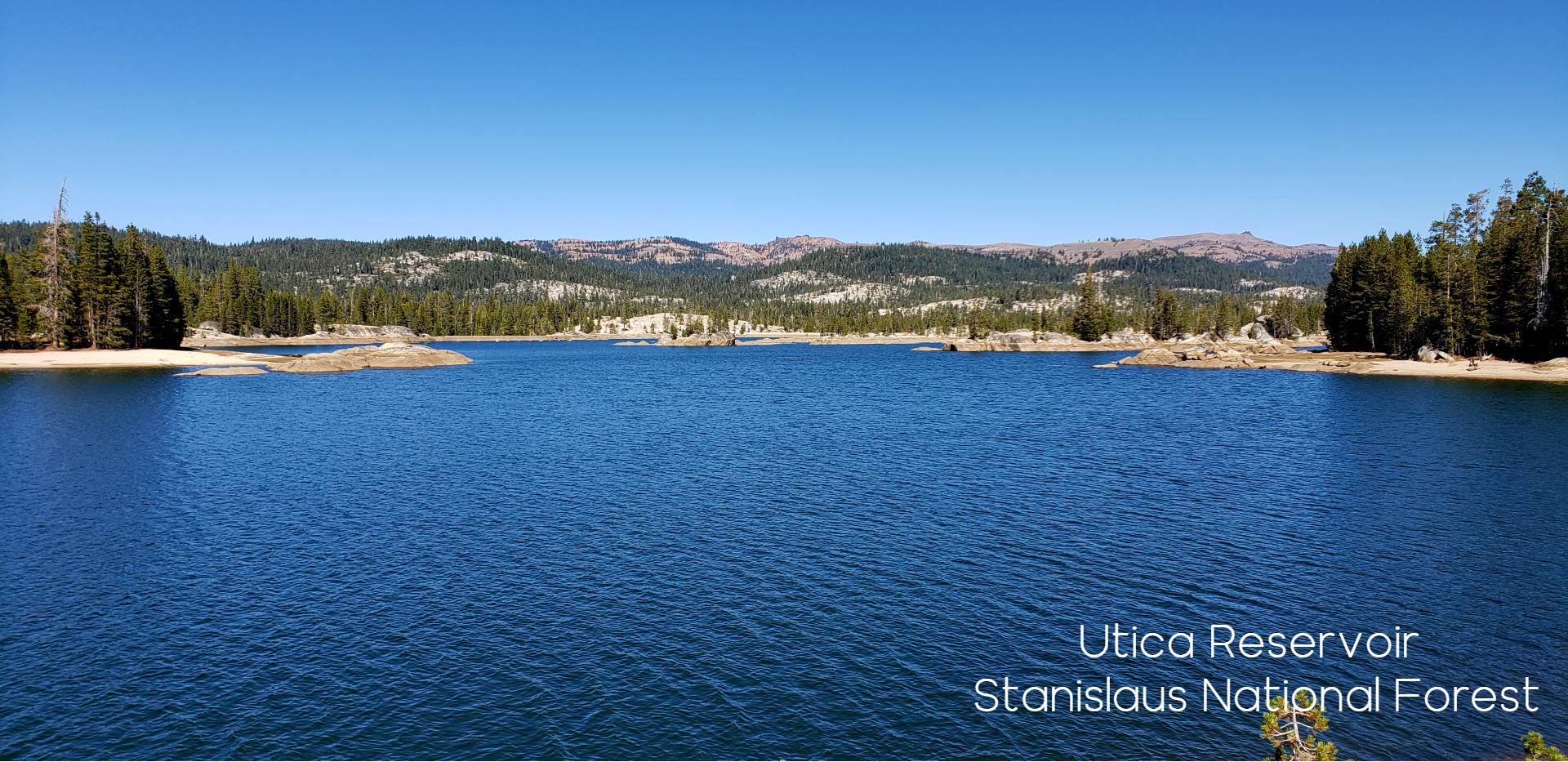 Lower Kinney Reservoir is located right off the shoulder of HWY just below the PCT and the Ebbetts pass summit. Parking is limited but this dammed reservoir provides deep blue water experience with forest and mountain views all around.