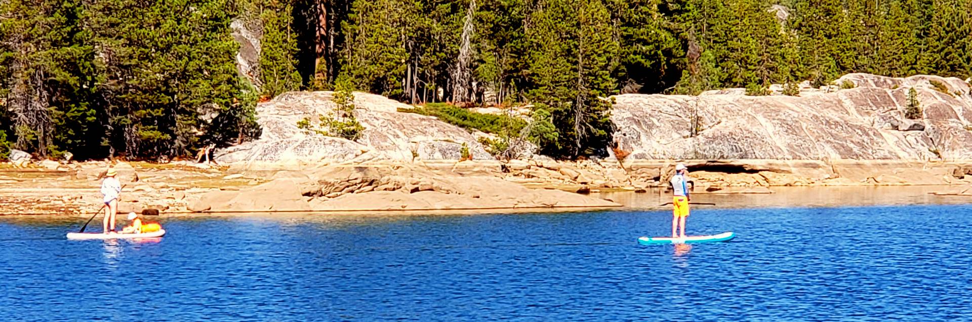 With 7 Roadside lakes to choose from Kayakers and Paddleboarders have their choice of pristine waters, smaller crowds than Lake Tahoe and incredible scenic views. Everyone should wear life vests (PFDs) because the lake waters are very cold and make swimming difficult.