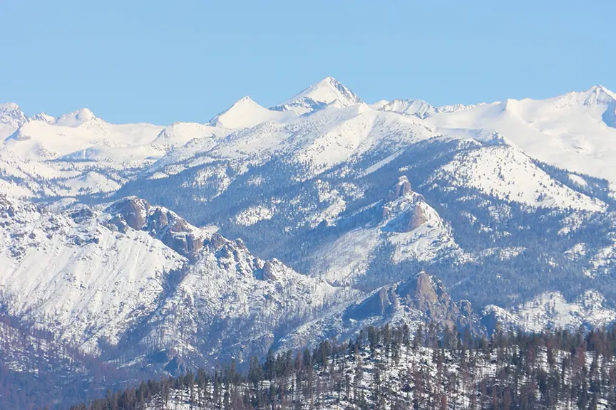If you go, Kings Canyon National Park charges a $35/week entrance fee. During winter, carry chains and prepare for adverse weather. Generals Highway, which connects Kings Canyon and Sequoia National Parks, closes for the winter. Access on its northern end, which leads to our Buena Vista Peak and Big Baldy trailheads, depends on weather and snow conditions.