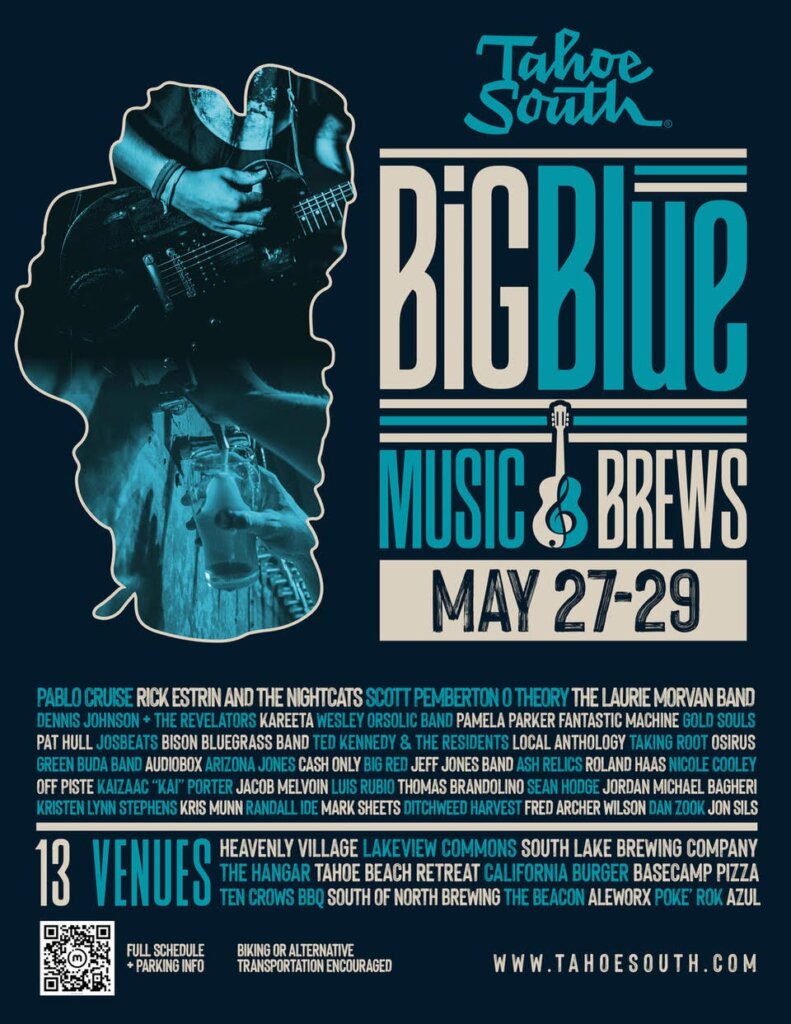 South Lake Tahoe – Events – Memorial Day Weekend, Friday, May 27, Saturday, May 28, and Sunday, May 29th the Big Blue Music & Brews Festival on the South Shore of Lake Tahoe! The three day festival will include live performances at 13 different venues and a variety of local craft beer specialities.