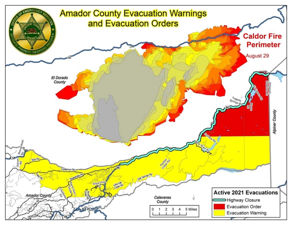 Estimates at 168,000 acres today Caldor fire Cal Fire provided this update for Evacuations and Warnings.