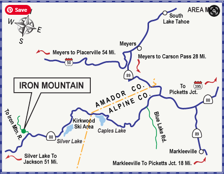 Iron Mountain is located on the north side of Highway 88 at the Mormon-Emigrant Trail Road.
