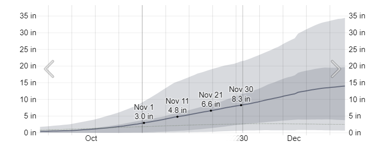 Once we start transitioning into December, the region will start breaking down the ridge of high pressure. Which could help the season of snow begin to build.