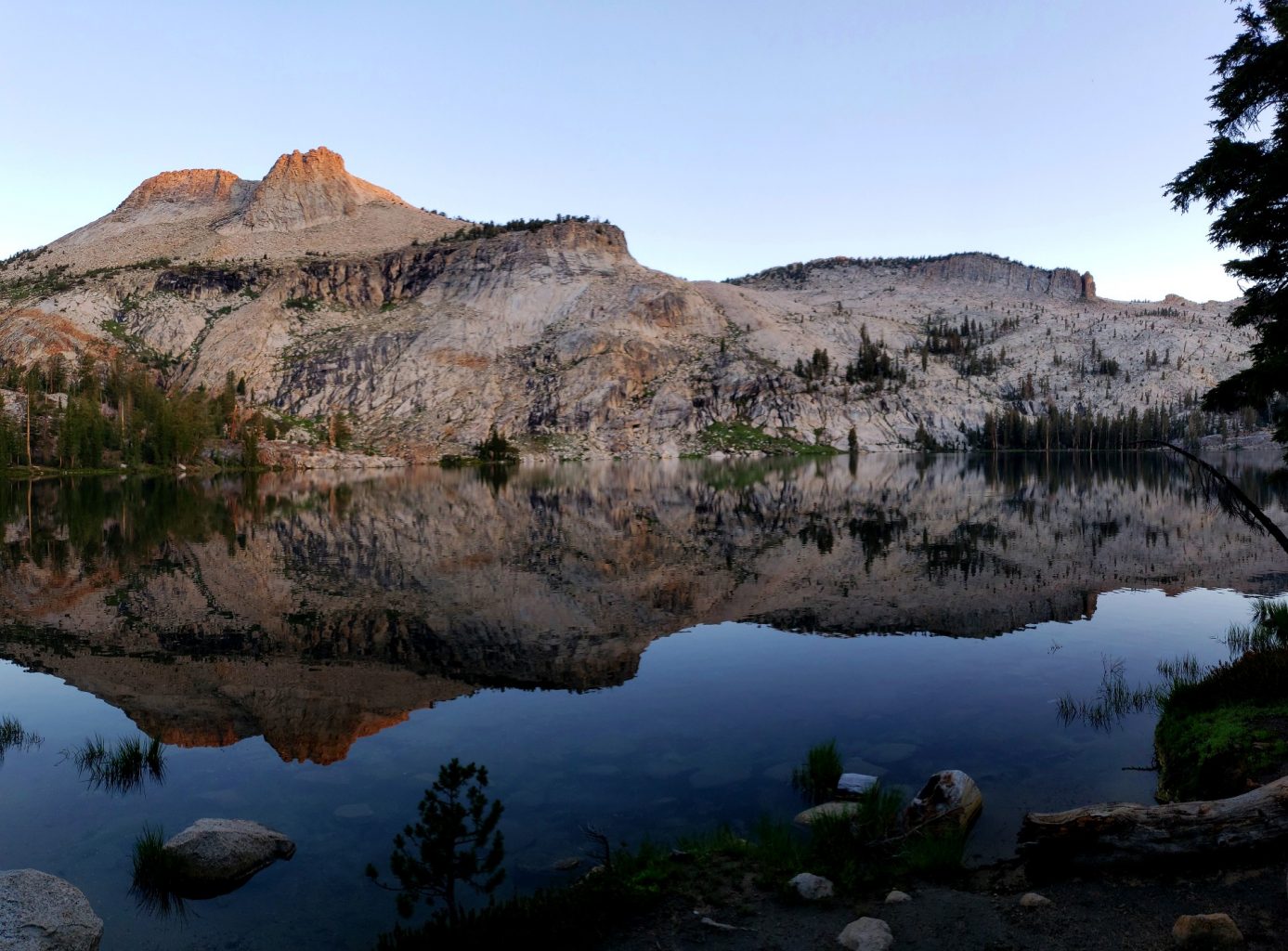 Visiting in Early Spring will often give you a frozen lake with several water cascades coming of Mt Hoffman on the North-side of the lake. And a mid summer weekend you might find a full house as hikers come up and down Mt. Hoffman, traverse around towards Glen Aulin high camp or are gathered for an afternoon swim and sun bath on the Back shore lines.
