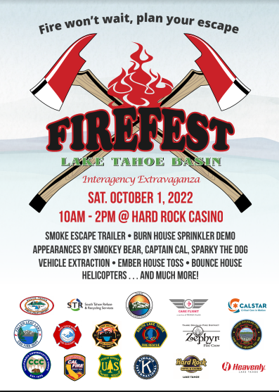 LAKE TAHOE, Calif./Nev. – Fire Fest will be held on Saturday, October 1, 2022, from 10 a.m. to 2 p.m. outside the Hard Rock Casino Lake Tahoe. Admission is free and it’s a great opportunity for families to have fun while learning about safety and conservation.