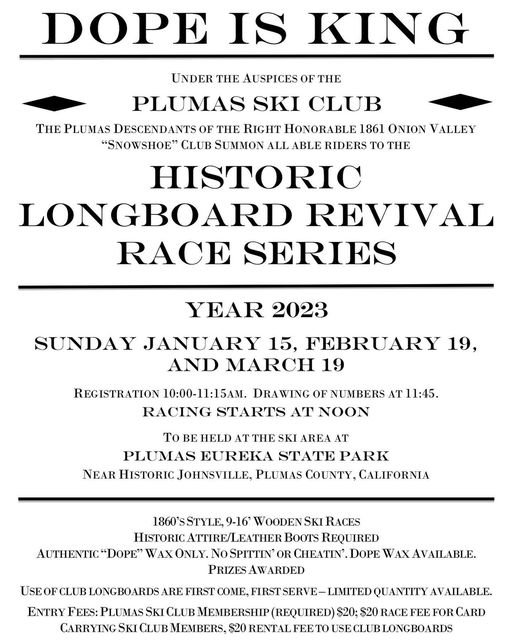 Johnsville Historic Ski Bowl, Ca- January 8, 2023 – The history of skiing is celebrated this week as the Historic Longboard Races of the Johnsville Ski bowl makes its official return in what will be the first of three race weekends this winter in the Sierra. Saturday January 14th 10am -4:00 pm.