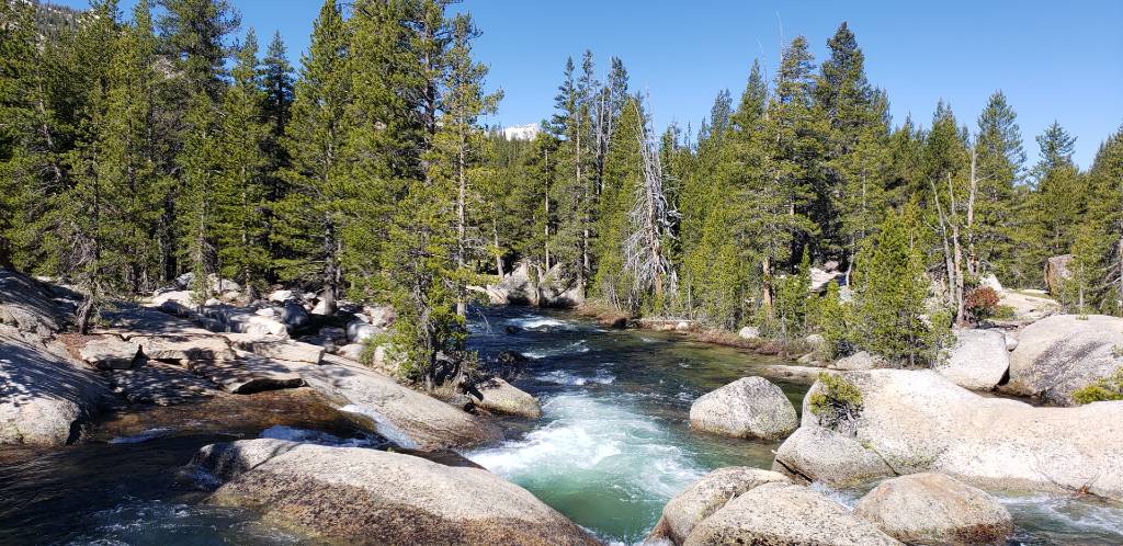 This trial is easy to moderate and can be walked along for hours with little elevation change most of the trip. Early trail features include a great cascade area with bridges and granite rocks to sit and enjoy the Tuolumne River. After crossing the river the trail weaves in an out of the forest along the Lyell canyon. featuring the river in many sections and wildlife in abundance depending on time of day. Take a hammock and hang along the shores of the river for a great morning / afternoon siesta in the high sierra. The Tuolumne is cold and refreshing and the water is so clear early in the season. Parking is best behind the Wilderness Permit station. The Tuolumne Meadows Wilderness Center is located just off the Tioga Road in Tuolumne Meadows. It is about one mile east of the visitor center. From the Tioga Road, follow signs for Tuolumne Meadows Lodge, Dog Lake, and Wilderness Permits follow this road toward the lodge.