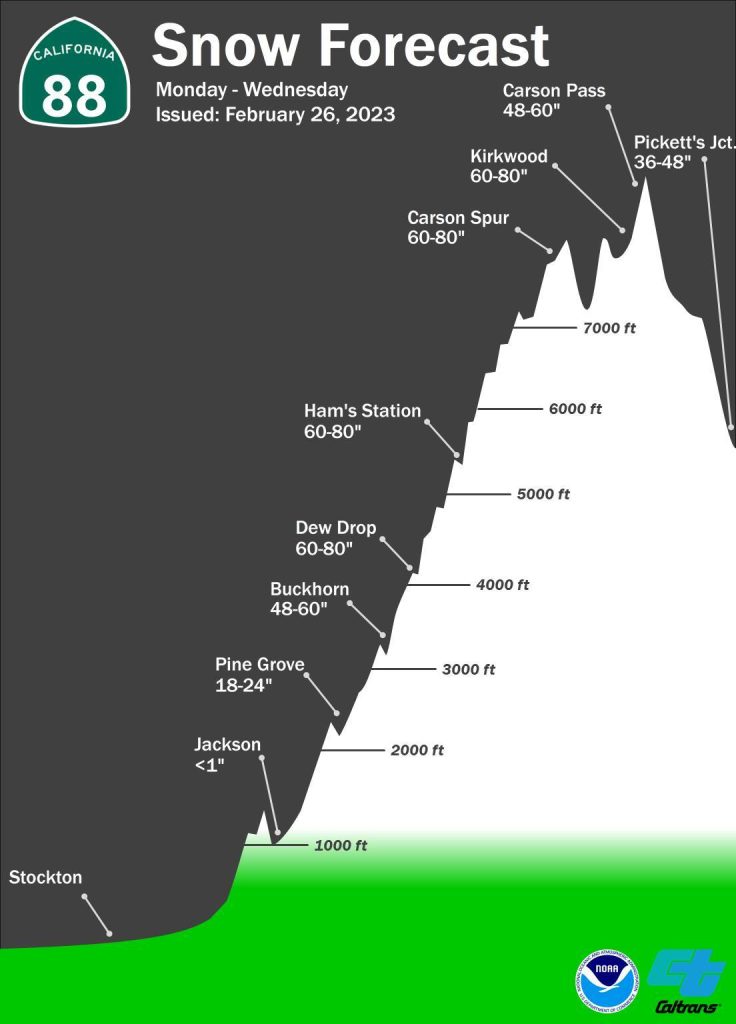 Highways 88, 50 and 80 continue to have frequent closures as CalTrans battles the conditions and the onslaught of drivers that seem to ignore the weather warnings for most of the weekend.