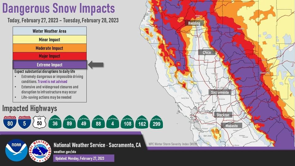 EXTREMELY dangerous to IMPOSSIBLE mountain travel expected today early Wed due to a major winter storm. BLIZZARD conditions are expected in the Sierra with the worst late morning-afternoon today & again Tues. MOUNTAIN TRAVEL IS HIGHLY DISCOURAGED!